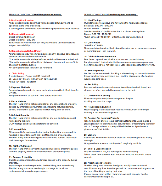 TERMS & CONDITION- Hari Mang Imm Homestay